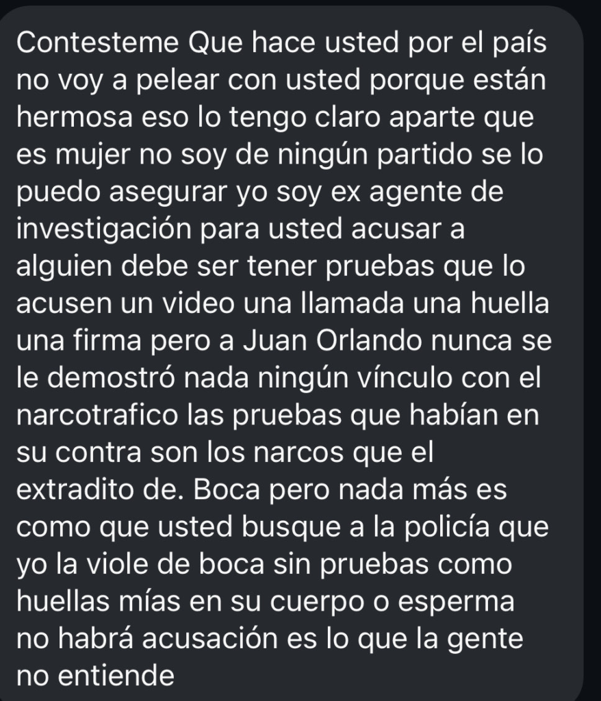 La víctima relató que uno de los mensajes recibidos le transmitió la idea de que, por ser mujer, su valor se limita a lo estético, sugiriendo que su participación en el debate público “la arruinó” por opinar y expresarse. En palabras de Arguedas, el mensaje daba a entender: “te hubieras quedado siendo bonita, porque ya te arruinaste con hablar”, reproduciendo estereotipos sexistas que buscan silenciar la voz de las mujeres en el espacio público digital.