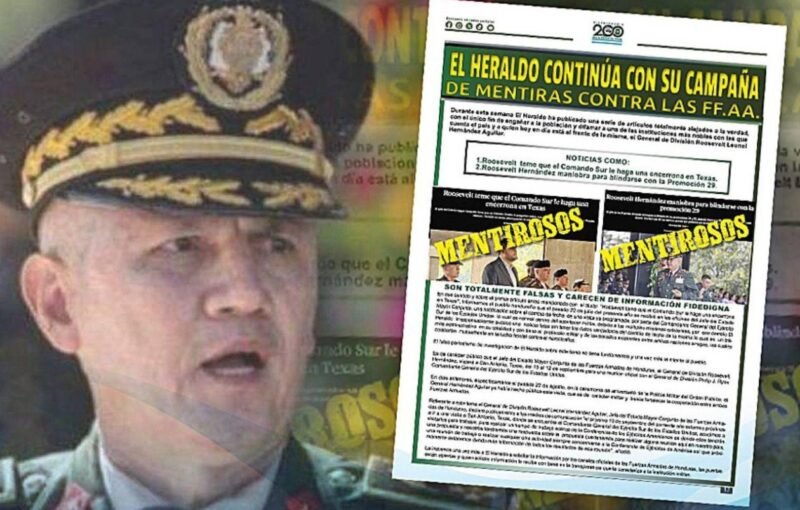 ALERTA 75-2025 Tegucigalpa, Francisco Morazán (C-Libre).- En la portada en página completa de su periódico oficial, las autoridades de las Fuerzas Armadas de Honduras (FF AA) sostienen que “EL HERALDO continúa con su campaña de mentiras» contra la institución castrense colocando un sello de “mentirosos” sobre una de las publicaciones […]