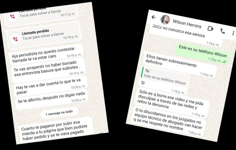 Choluteca, Honduras (C-Libre),- El periodista Paulo Emilio Herrera Hernández, corresponsal de Televida en el departamento de Choluteca, al sur de Honduras, denunció haber recibido mensajes intimidantes luego de publicar una entrevista en la que una madre de familia que reclamaba públicamente por la situación judicial de dos de sus hijos, […]